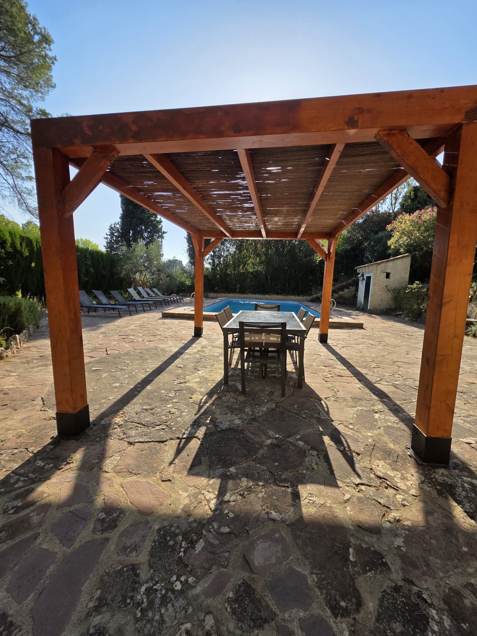 Capacidad para 14 personas. 6 habitaciones y 2 Cuartos de baño. Piscina Privada, Barbacoa con accesorios, Aparcamiento para vehículos.